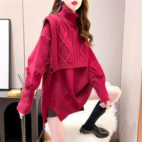 两件套加厚高领套头毛衣女2021秋冬新款韩版纯色针...