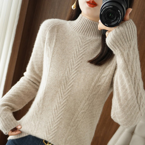 2022秋冬女装针织衫女式半高领毛衣女厚款麻花打底...