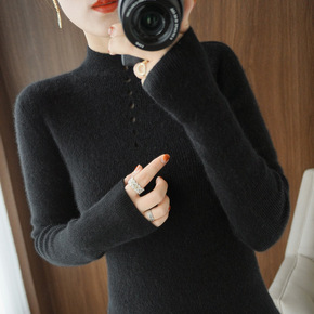 【一线成衣】半高领羊绒羊毛衫女2022秋冬套头镂空...