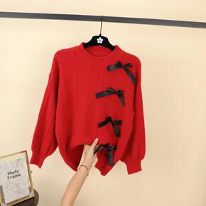 速卖通2022跨境新款女装圆领日韩提花毛衣甜美可爱...