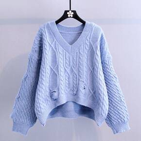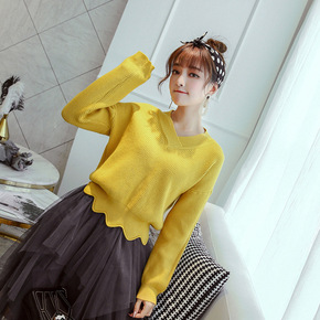 秋冬新款小个子短款外搭毛衣女v领收腰打底衫韩版宽松...