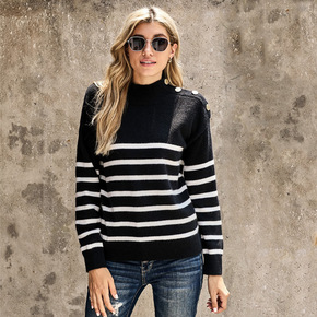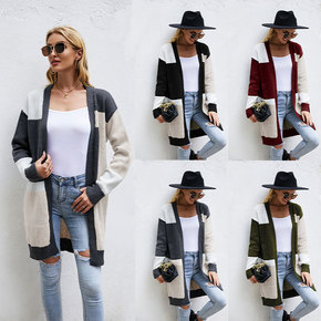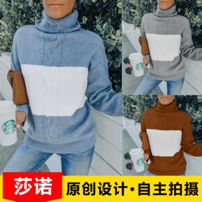秋冬2022年新款女士半高领撞色毛衣外套女宽松网红...