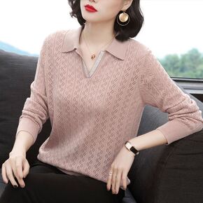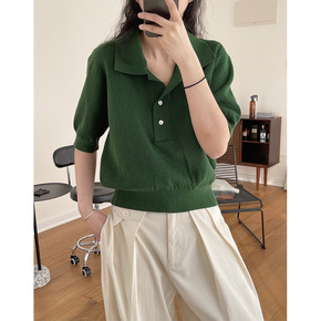 夏季新款韩版东大门慵懒简约翻领针织短袖宽松显瘦凉感...