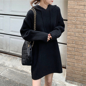 2022年秋新款复古潮搭显瘦连帽休闲印花针织衫上衣...