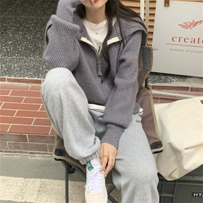 2022春秋新款针织衫POLO领毛衣女长袖套头小香...