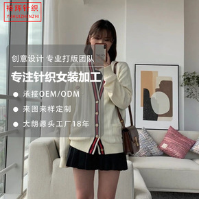 大朗针织工厂生产小批量时尚小香风开衫女式毛衣加工来...