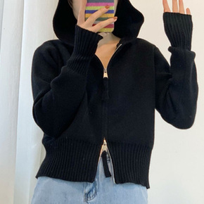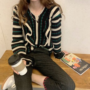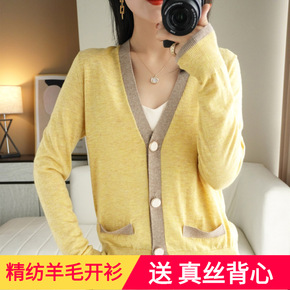 【超温油】撞色V领羊毛针织衫2022新款短款开衫薄...