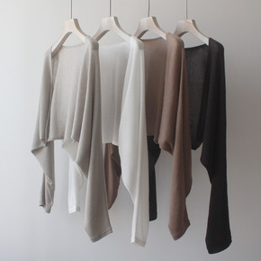 2022春夏新款天丝短款披肩女长袖针织坎肩宽松蝙蝠...