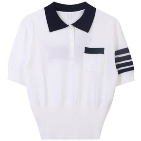 韩国KITTIN春装新款2022撞色领圆领套头气质...