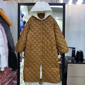 2021年新款羽绒服女大码菱格过膝宽松明星同款白鸭...