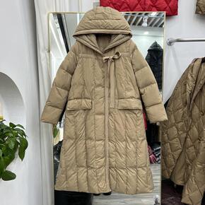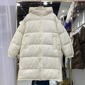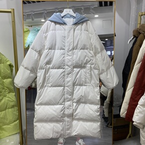 反季清仓2021中长款羽绒服女连帽宽松加厚韩版白鸭...
