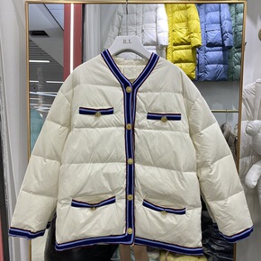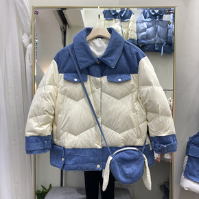 2021年秋冬新款羽绒服女加厚牛仔拼接白鸭绒面包服...