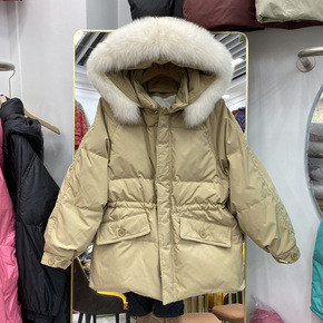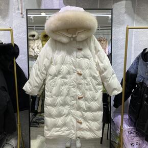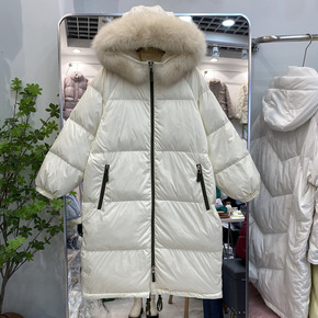 2022年冬季新款大毛领羽绒服女中长款韩版宽松白鸭...
