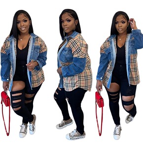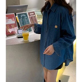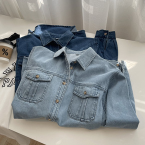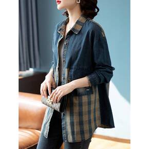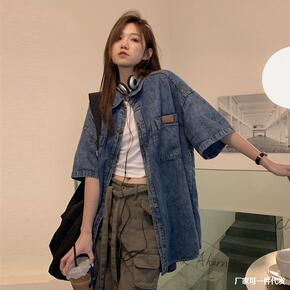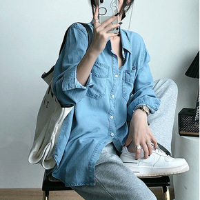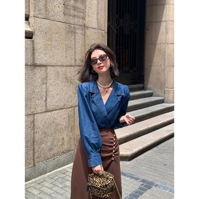 【欧凡】8461蓝色牛仔衬衫女2022春季新款复古...