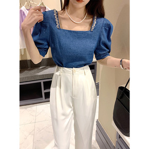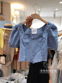 实拍现货~短款设计感牛仔衬衫女2021夏季新款休闲...