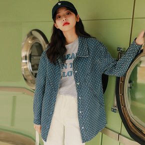 2022早春新款韩版chic波点水洗牛仔衬衫长袖衬...