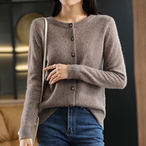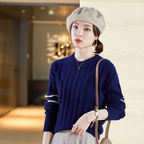 圆领女士纯羊毛衫2021秋冬季新款打底衫韩版长袖套...