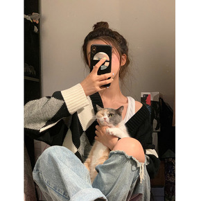 一眼喜欢!时髦开衫羊毛慵懒范显瘦厚女针织衫秋冬新2...