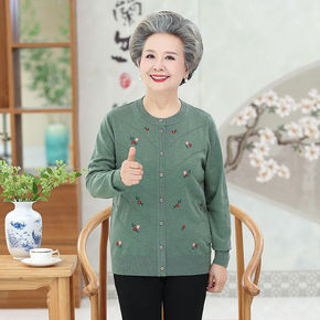 妈妈装春装针织衫中老年人毛衣开衫女60岁70奶奶装...
