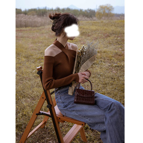 法式复古针织衫挂脖露肩心机上衣修身显瘦仿羊毛衫设计...
