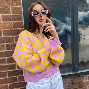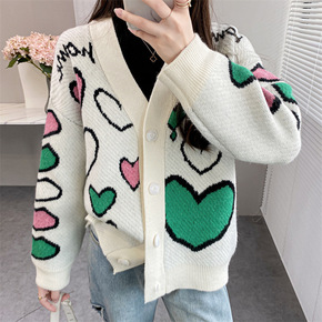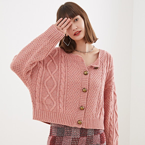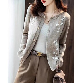毛衣开衫女毛衣2021新款秋冬季法式复古圆领宽松短...