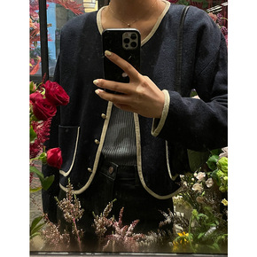 羊毛针织开衫女2021秋季新款韩版盐系撞色边温柔慵...