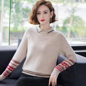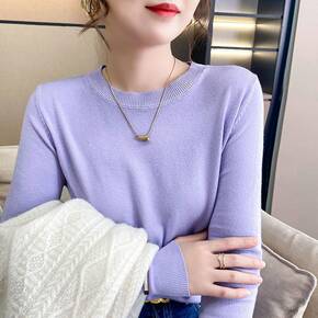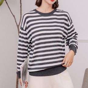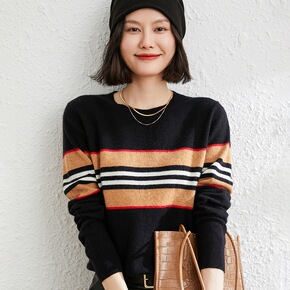圆领羊绒衫女2021秋冬新款套头针织打底衫羊毛条纹...