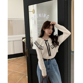 海军领长袖针织衫女2021秋韩版温柔甜美宽松休闲毛...