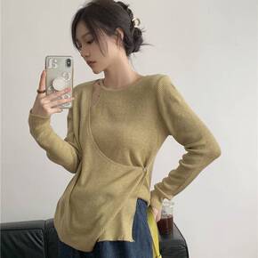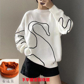 TG 套头长袖针织衫女2021冬季韩系复古纯色宽松...