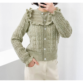 os2021秋冬新款双色娃娃领羊毛荷叶袖绞花时尚宽...