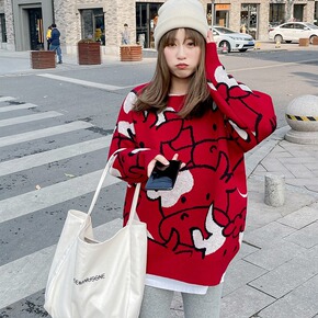 韩版潮女毛衣秋冬新款慵懒宽松舒适100%纯羊毛外穿...