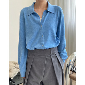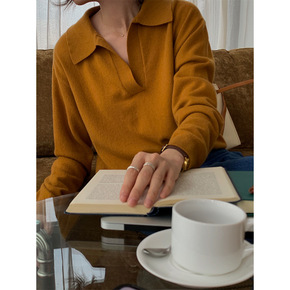 秋冬新款法式慵懒软糯羊毛翻领针织衬衫宽松显瘦弹力开...