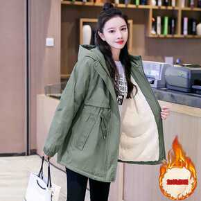 工装派克服加绒棉衣外套女韩版宽松小个子2021秋冬...