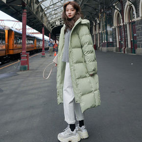 棉服女中长款过膝加厚韩版2021冬季新款棉衣女学生...