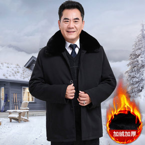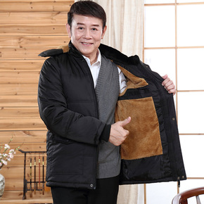 男装加绒加厚棉服秋冬款中年男士棉衣外套大码中老年人...