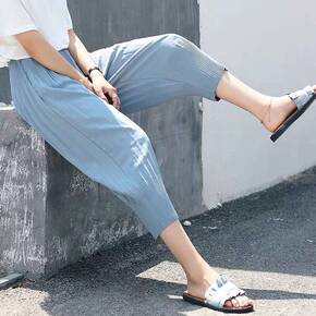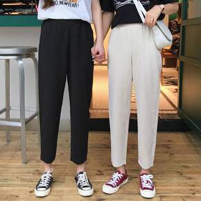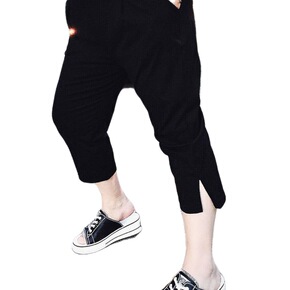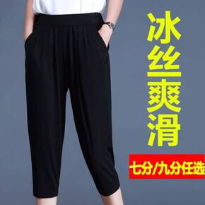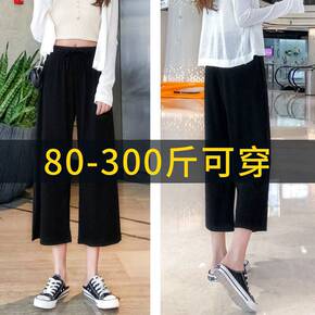 夏季裤子女300斤可穿夏季百搭显瘦开叉七分裤女宽松...