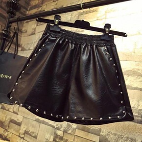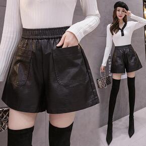 2021秋冬装加肥大码皮短裤女新款宽松胖妹妹a字显...
