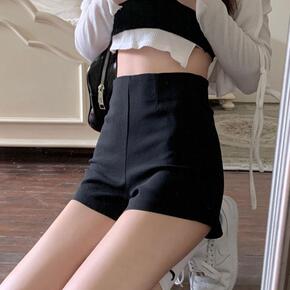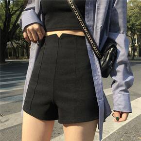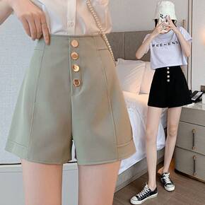 2022夏季新款大码胖短裤女高腰外穿排扣阔脚裤黑色...
