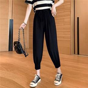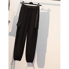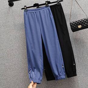 夏季裤子女大码冰丝束脚工装裤女春秋新款200斤胖妹...
