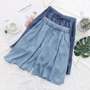 女装上衣穿搭五分裤女夏薄款大码胖宽松韩版阔腿热裤松...