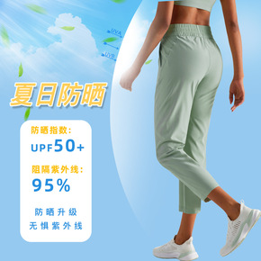 2022春季弹力运动裤女纯棉长裤薄款九分哈伦裤卫裤...