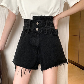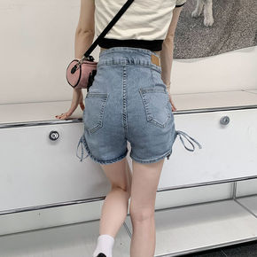 抽绳牛仔短裤女夏宽松韩版新款设计感辣妹高腰显瘦a字...