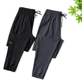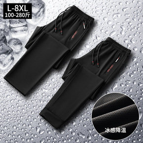 夏款大码冰丝裤男潮肥佬胖哥空调裤网眼超薄直筒运动休...