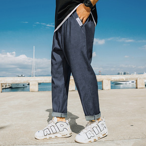 21秋季一裤三穿休闲潮流松紧腰纯色牛仔裤男宽松9分...