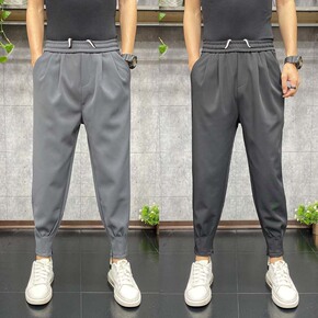 春季新款纯色西裤男韩版潮流小脚休闲裤褶皱拉链哈伦裤...