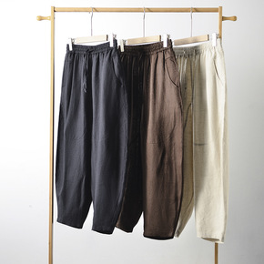 中国风夏薄款冰丝休闲裤棉麻裤男裤哈伦裤灯笼裤沙滩裤...