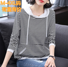 2018秋季新款日系宽松百搭森女系长袖T恤拼接抽绳...