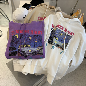 2022欧美外贸跨境新款女装 长袖连帽 宽松印花基...