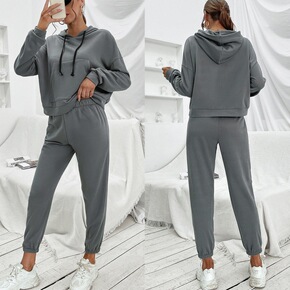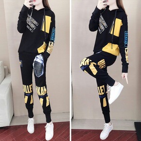 新款外贸跨境欧美女装时尚运动宽松连帽卫衣休闲裤两件...