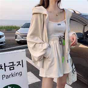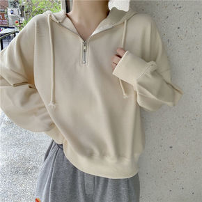 连帽拉链卫衣女2021新款韩版宽松bf慵懒开衫加绒...